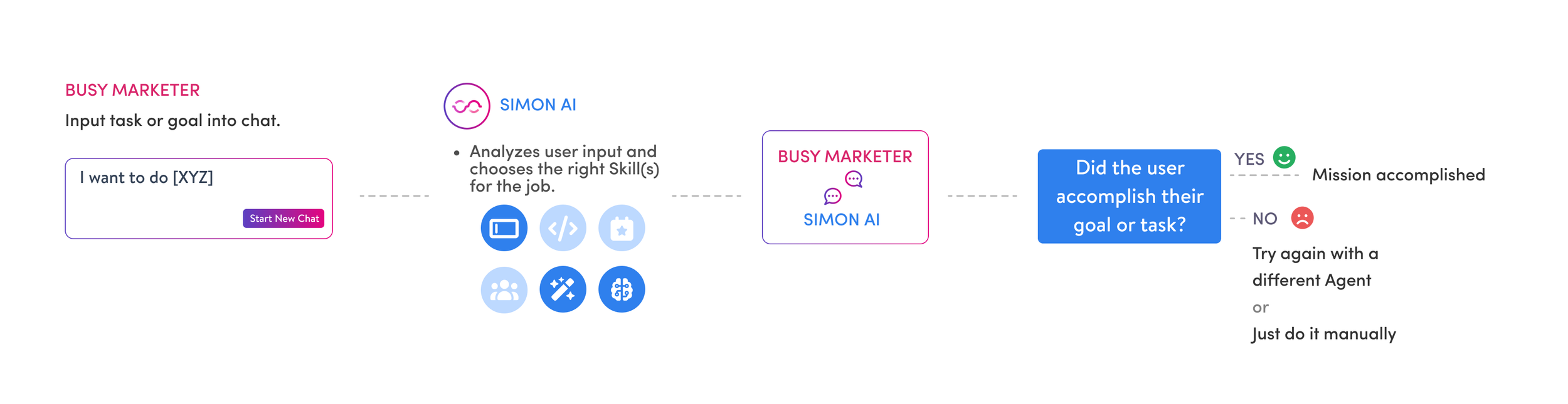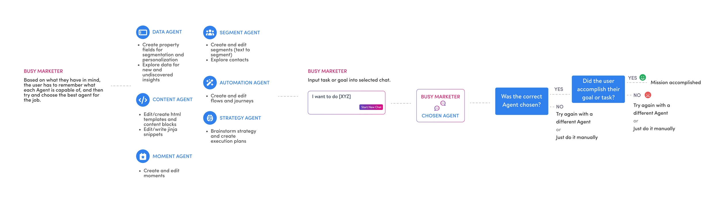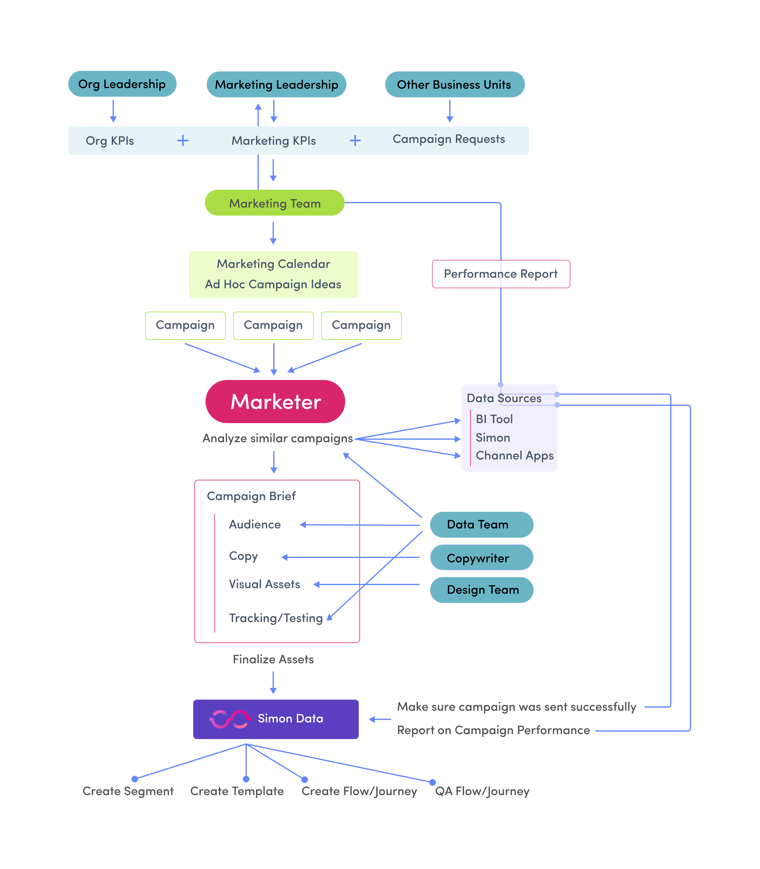 The marketer needs Simon’s AI Agents to work together as a team in order to effectively leverage and incorporate the suite of Agents into their day-to-day workflow.